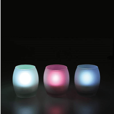 Set de 3 photophores en verre dépoli avec bougie à LED contrôlable par télécommande, flamme à effet vacillant, changement de couleur en dégradé ou éclairage fixe sur l'une des 12 couleurs proposées, fonction minuterie permettant l?arrêt automatique de l?éclairage après 4 ou 8 heures d?utilisation, interrupteur ON/OFF