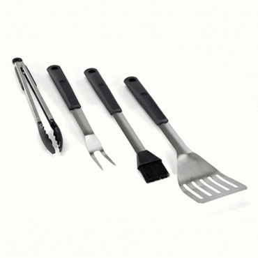 Set de 4 accessoires pour barbecue, 1 spatule, 1 pince, 1 fourchette et 1 pinceau en silicone