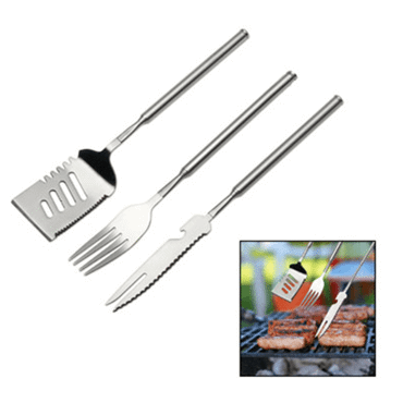 Set de barbecue REFLECTS OLINDA-acier, argenté, fourchette, brochettes, inverseur, emballage individuel REFLECTS