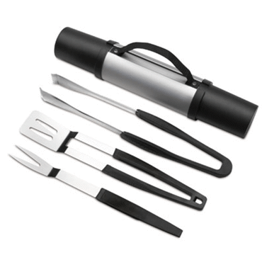 Set de barbecue REFLECTS VALBOM-aluminium/acier/plastique, noir/argenté, fourchette, pince à grillades, inverseur, emballage REFLECTS Dim Packaging : 76x76x450 mm