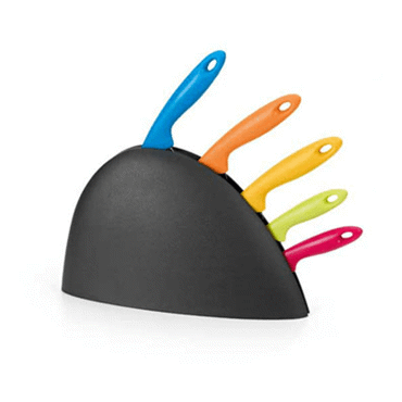 Set de couteaux. PP et acier inox. 5 couteaux avec support. Livré dans coffret cadeau. Support: 290 x 180 x 85 mm