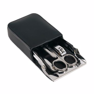 Set manucure comprend: ciseaux, lime à ongles, pincette, repousse cuticule, dans un étui élégant