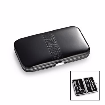 Set de manucure en simili cuir. 5 pièces incluses. Dimension : 110 x 65 x 20 mm
