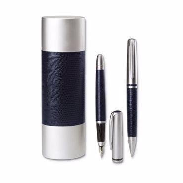 . Set Avant-garde. Plume et bille aluminium et cuir livré en tube.