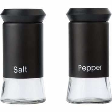 Set de table comprenant vinaigrier, huilier, poivrier et salière en verre.