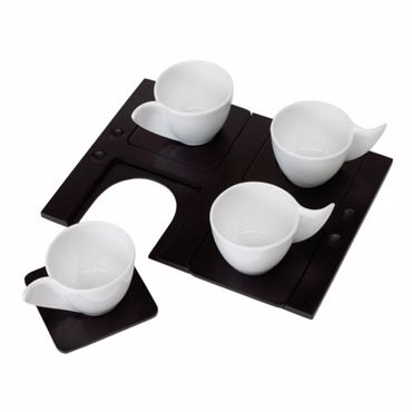 Set de tasse "Individual" : comprend 4 tasses, 4 sous tasses, sur un plateau en bois, dans boîte cadeau