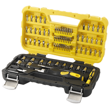 Set de tournevis 75 pcs.Ce set comprend notamment un tournevis, 1 adaptateur, 1 adaptateur carré, 11 embouts, 3 jeux de douilles, 34 douillles de 25mm. Ce set est fourni dans un coffret avec fermetures métal. Sous coffret Dunlop. Design exclusif.Abs et Inox. Impression : pochette verticale, rabat en haut, Sur la poche, max color : 1