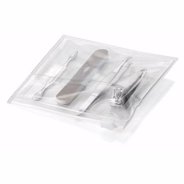. Ce set comprend une lime à ongles, une pince à épiler, un repousse-cuticules et un coupe-ongles.