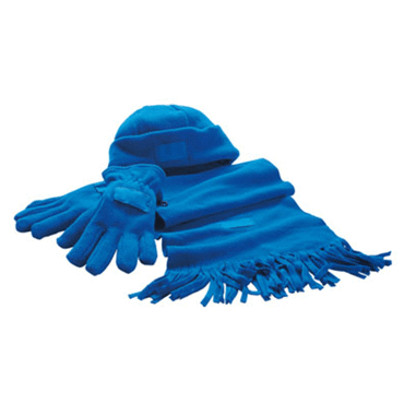 Set Polaire , comprend: bonnet avec protège oreilles, écharpe avec franges, gants avec fermeture PVC, étiquettes cousues pour le marquage 100% Polyester- polaire 230g/m² . Taille de l'article : taille unique, poid net : 0,183 kg, poid brut : 0,19 kg . Marquage : transfert: 180 x 300 mm ,transfert: 45 x 20 mm . Colisage : [50/100], 60 x 58 x 60 cm . Couleurs disponibles : bleu, rouge, noir Tarifs hors marquage.