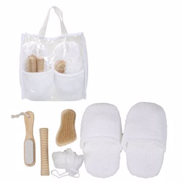 Set relaxation SPA. Set de bain ""SPA"" Set de bain 5 pcs (pantouffles (taille unique), brosses de massage pour le visage et le dos) dans étui en PVC transparent fermeture pression