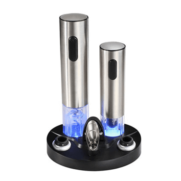 Set sommelier 6 pièces sur socle de recharge, comprenant un tire-bouchon électrique et une pompe vide d?air, deux bouchons, un bec verseur, un coupe-capsule