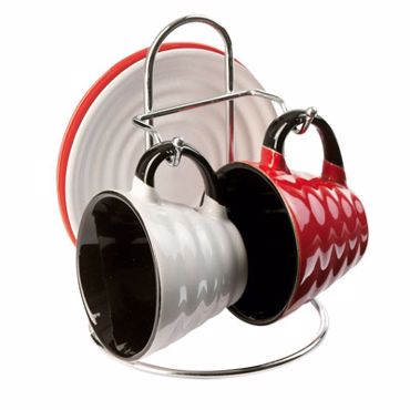 Set tasse à expresso. Présentoir métallique de 2 tasses expresso Ø 7 cm et sous-tasses Ø 11 cm en céramique