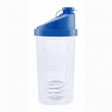 Shaker en plastique avec couvercle bec verseur et balle en métal permettant le mixage. Contenance 700 ml.