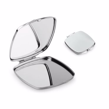 Double miroir de poche mé,tallique. Approprié, pour la doming. Livré, avec coffret cadeau. Coffret: 67 x 75 x 9 mm