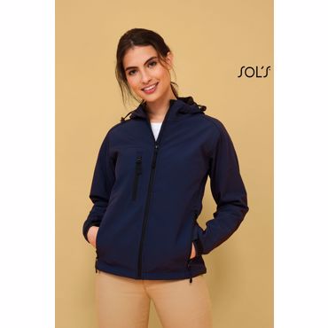 Softshell femme à capuche Qualité : SOFTSHELL 340 3 couches 94% polyester - 6% élasthanne Membrane 8000 mm imperméable et respirante. 2 poches latérales et 1 poche poitrine zippées Cordon de serrage réglable à la taille Bas de manches ajustables avec bande auto-agrippante Capuche avec cordon de serrage Couleurs disponibles :Blanc,French marine,Gris chiné,Noir,Rouge piment,Royal Tailles disponibles :S,M,L,XL,XXL