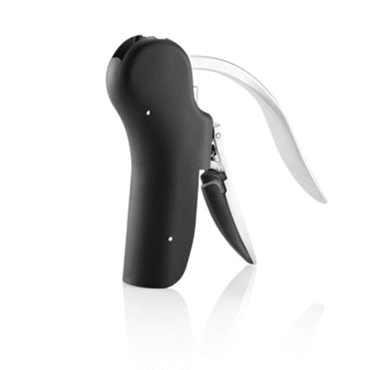 Sommelier à vin design, poignée en alliage de zinc, pied en ABS et caoutchouc noir pulvérisé, emballé dans une boîte blanche magnétique avec intérieur noir.