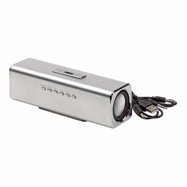 Cette sound box personnalisée New Wave possède 2 hauts parleurs mais fait aussi office de radio FM. Elle permet de lire les cartes micro SD et les clés USB.