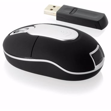 Souris sans fil publicitaire. Souris optique sans fil. Fréquence 27 mégahertz, récepteur intégré dans la souris avec pour fonction l'arrêt de l'alimentation. Compatible uniquement PC. Piles incluses.