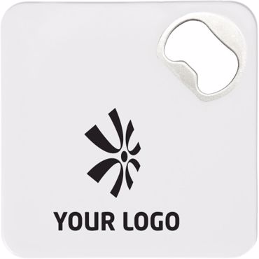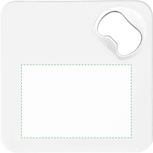 Sous-verre en plastique muni d'un fond antidérapant et d'un décapsuleur.