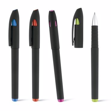 Stylo à bille. ABS. Recharge gel. Corps caoutchouté,. ø13 x 143 mm