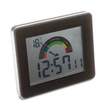 Station météo REFLECTS TRENTON-plastique, rectangulaire, Mode 12/24 heures, piles incluses, CE, Date, cadran LCD, Avec support, Thermomètre, Horloge, Support pour le mur, emballage individuel REFLECTS Dim Packaging : 21x92x111 mm