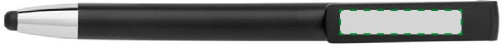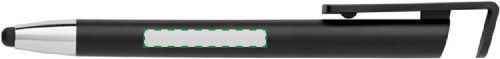 Stylo bille en plastique muni d'un support pour téléphone et d'un embout pour écran tactile, mine bleue. **Marquage blanc non couvrant.**