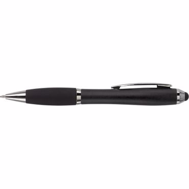 Stylo bille en plastique avec embase en gomme et embout pour écran tactile, mine noire.