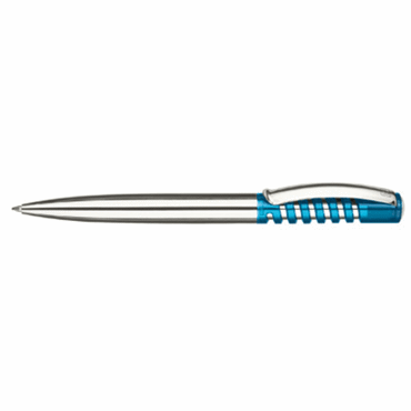 Stylo-bille New Spring Chrome Clear - Stylo à bille rétractable avec mécanisme de pression sur capuchon original. Embout en métal, clip en métal brillant. Tube intérieur et bouchon métallisés. Recharge plastique super grande capacité, type G2, écriture noire ou bleue. Matériel : plastique, métal
