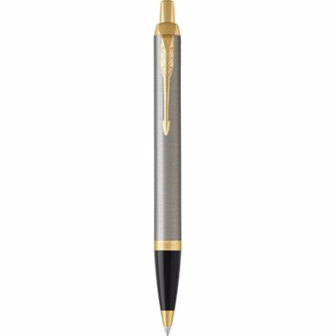 Stylo bille laiton Parker IM dans une boîte cadeau, mine bleue.