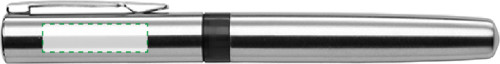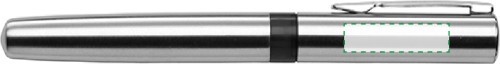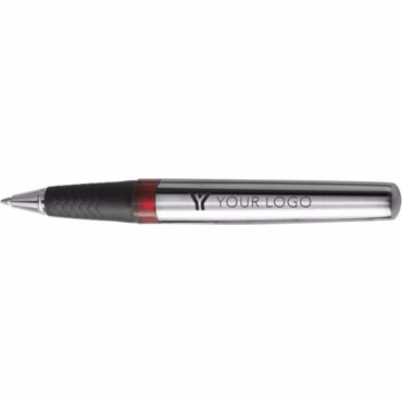 Stylo bille en métal avec bague translucide et embase en gomme, mine noire.
