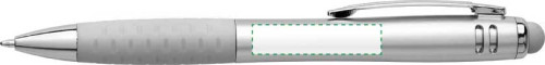 Stylo bille twist lumineux en plastique avec embase en gomme et embout pour écran tactile, mine bleue. Gravé le logo s'illumine par rétroéclairage.