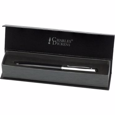 Stylo bille twist Charles Dickens en métal et plastique livré dans un écrin cartonné à fermeture magnétique.