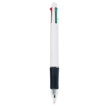 Stylo multifonction 4 en 1 avec encres de 4 couleurs différentes. Corps de couleur solide, attributs et anneau transparent, et grip de couleur noire. ABS Packaging : Conditionnement en vrac Tarifs sans marquages Marquages possibles : Sérigraphie, corps arrière clip 16 mm L X 38 mm H , max couleur : 1; Estampographique, corps droite clip 6 mm L X 40 mm H , max couleur : 2.; Estampographique, corps gauche clip 6 mm L X 40 mm H , max couleurs : 2