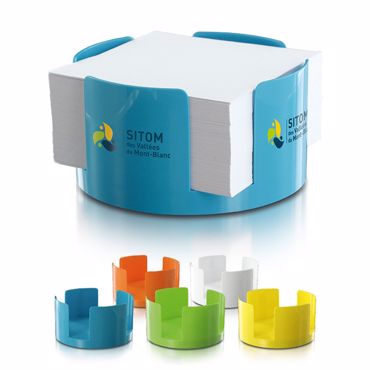 Qui a dit que le porte-bloc papier devait être carré ? Pas lui ! Il affiche même fièrement ses rondeurs avec des couleurs acidulées ! Livré sous film individuel rétracté avec bloc papier blanc 90x90x40 mm. Option avec surcoût sur devis = Boîte individuelle blanche. Papier issu de forêts gérées durablement. Marquage sur 1, 2, 3 ou 4 faces (couleur idem sur 4 faces = prix marquage 1 couleur).