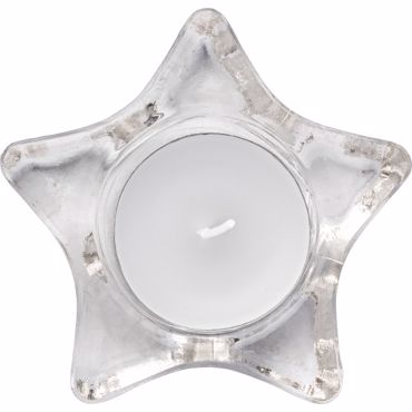 Support en verre et bougie conditionnés dans une boîte cadeau.