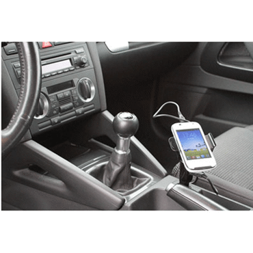 Support universel et chargeur téléphone mobile de voiture, réglable et modulable, il s?adapte parfaitement aux différentes tailles de vos appareils, rotation 360°, muni d?un adaptateur allume-cigare USB pour le chargement de votre appareil
