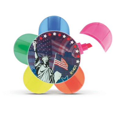 Surligneur en forme de fleur avec 5 couleurs d' écriture. Grande surface de marquage. Matériau ABS.
