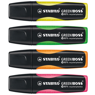 LUMINOSITE ET CONSCIENCE ECOLOGIQUE. Surligneur de forme classique avec zone de préhension souple et ergonomique, fabriqué à 83% à partir de matière plastique recyclée. Deux largeurs de tracé, rechargeable. Peut rester longtemps ouvert ? jusqu'à quatre heures.