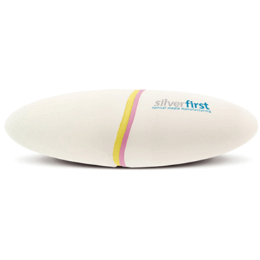 Surligneur selon design Toppoint. De forme ovale et couleur blanche opaque avec encre jaune et rose.