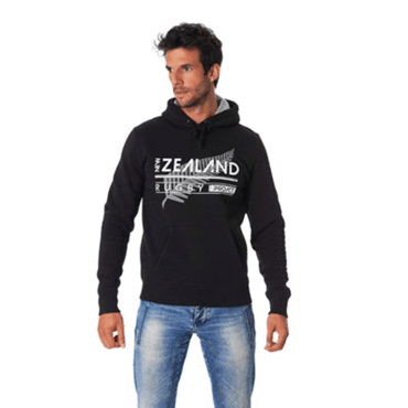 SWEAT CAPUCHE NEW ZEALAND - 80% coton / 20% polyester. Molleton gratté pré-rétréci. Lavage siliconé. Bande de propreté contrastée à l'encolure. Intérieur de la capuche contrasté coloris Heather Grey. Poche Kangourou. Finition bord-côte bas de manche et bas de vêtement. Impression en sérigraphie + matière «Grip». - 360 gr/m²