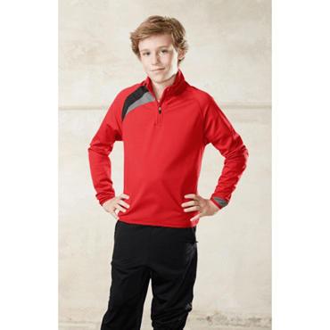 100% polyester polytricot gratté. 1/4 zip. Empiècements contrastés corps et bas de manche. Coutures en points de recouvrement ton sur ton. Bas de vêtement et manches avec bande élastique.