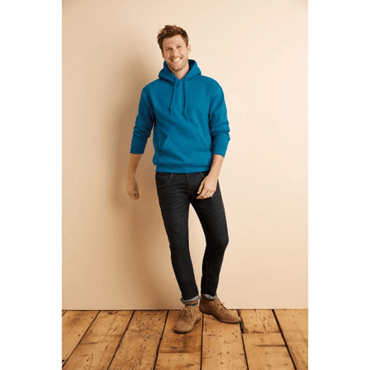 50% coton / 50% polyester. Manches droites. Capuche doublée et cordons assortis. Coupe ample.