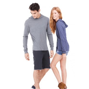 100% coton peigné ring-spun (sauf coloris Heather Navy : 52% coton ring-spun peigné / 48% polyester). Manches longues. Capuche. Bande de propreté ton sur ton d'épaule à épaule. Coutures latérales. Finition double aiguilles bas de vêtement. Bord-côte aux poignets. Grammage du produit : 145 gr/m²
