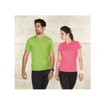 100% polyester. Tissu léger à séchage rapide. Encolure ronde avec bande de propreté. Manches raglan avec points de recouvrement. Finition double aiguille à l'encolure, bas de manches et de vêtement. Grammage du produit : 140 gr/m²