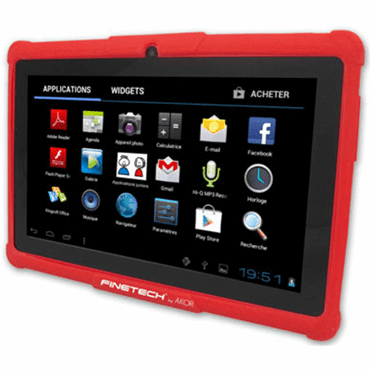 TABLETTE 7" 4 GO PROT. ANTI-CHOCS - Livrée avec pochette anti-chocs. De 7 à 77 ans, avec accès au portail Google Play et à la sélection Junior Finetech. Une bonne autonomie grâce à sa batterie 3000mAh et de bonne performance grâce à son processeur 1,5Ghz max. Tablette tactile AKOR compatible wifi, clé 3G & RJ45 (adaptateur non inclus). Indispensable pour tous vos déplacements. Processeur: 1,5 GHz max, écran tactile 7'' capactitif multitouches, 16:9. OS: Google Androïd 4.0. RAM : 512MO, mémoire interne : 4 GO (paratgé avec android). Interface: USB2.0, entrée carte micro SD., Réseau: WIFI, 10/100M Ethernet. Logiciels: Youtube, Facebook, Navigateur Internet, Email, traitement de texte, tableur, PPT, PDF, calendrier, calculette, etc. Audio :MP3,WMA., Vidéo: WMV, ASF,AVI,FLV, 3GP, MP4 etc. Photo: JPG/BMP/GIF., Chargeur: DC 9V/1.5A inclus. Batterie 3000mAh.