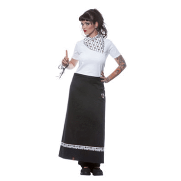 Tablier Rock Chef long. -Logo coté gauche et bande décorative tissée en bas de tablier. -Coutures renforcées. -110x90cm. -65% polyester/35% coton 215 gr/m². -Lanière de taille à nouer. -Lavable à 60°C. -Sanfore : Traitement des tissus de coton contre le rétrécissement.. -