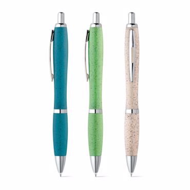 Stylo en fibre de paille de blé et ABS avec clip. Dimension : ø12 x 140 mm Encre : bleue