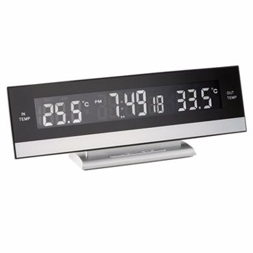 Thermomètre electronique int/ext Thermomètre radio-piloté, indication température int./ext., sonde extérieure sans fil, historique des températures max./min., affichage par LED blancs