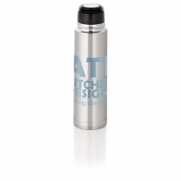 Thermos logoté 500 ml. Contenant isotherme. Ce contenant isotherme dispose d'une double paroie en acier inoxydable. La tasse est intégrée dans le couvercle. Capacité 0.50 l.