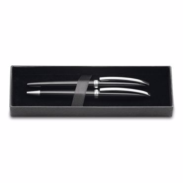 Set de stylo à bille métallique et stylo roller dans une boîte cadeau en carton. Encre bleue.boîte 185 x 23 x 59 mm
